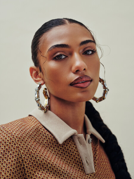 Dior wears MAISON DE HOE top, THE ARCHIVE X YANA earrings