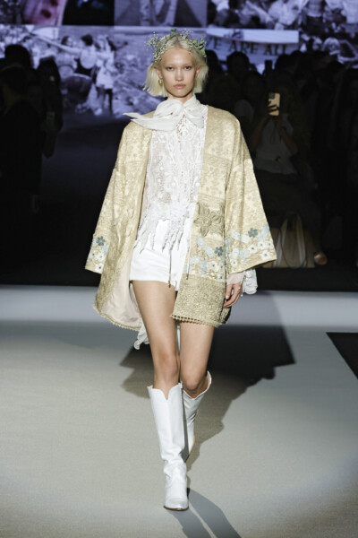 Isabel Sanchis debuted Japón Vivo, a collection that explores the interplay between traditional Japanese aesthetics and contemporary design. Referencing Japanese ash trees and mural-style prints on the fabrics, as well as Japanese-inspired headwear, the collection also featured bold silhouettes crafted through precise, structured tailoring. Copious layers of draped fabric were artfully combined to create striking, cohesive looks. This ready-to-wear collection captivated an audience of industry peers, along with both local and international press.