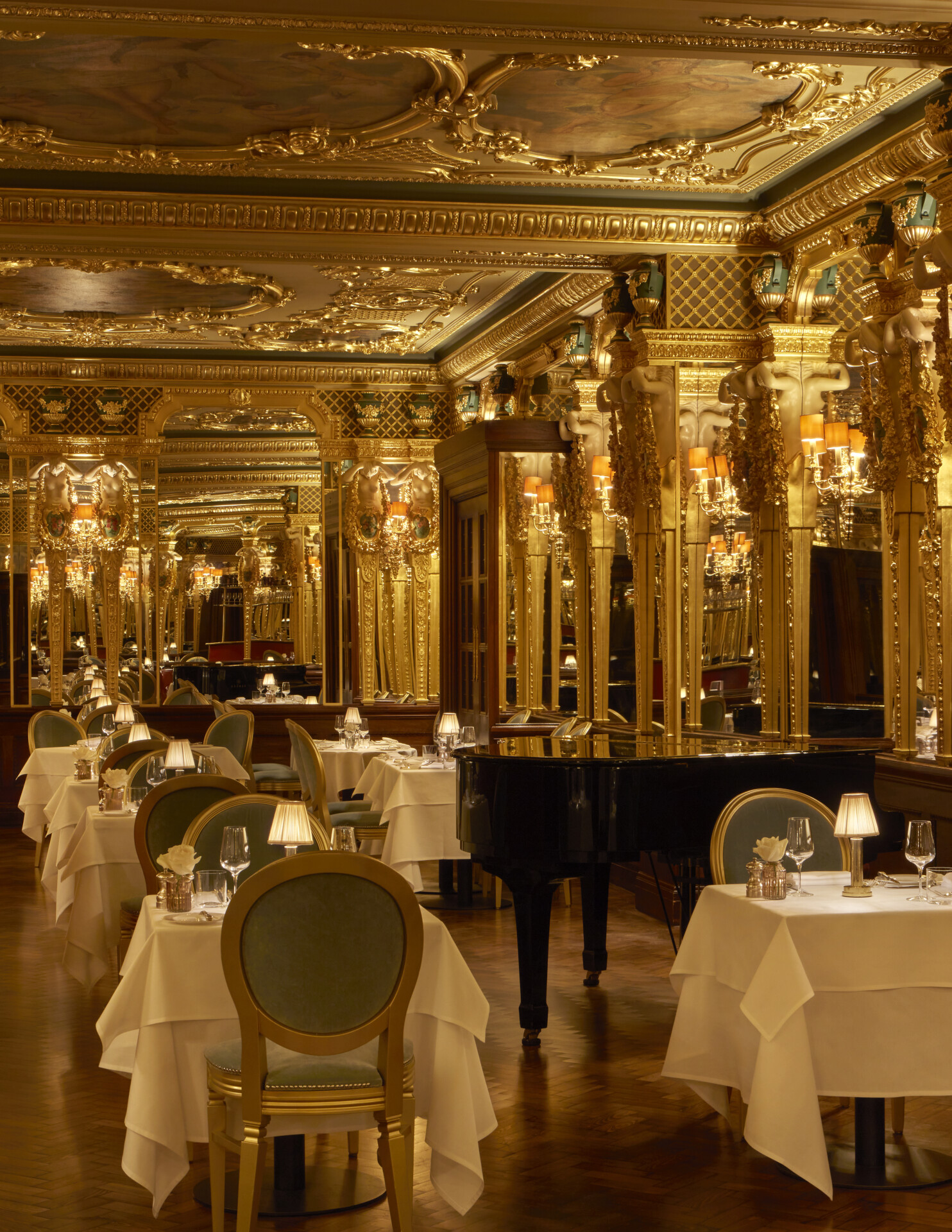 Upon stepping inside, the restaurant’s rich history is immediately palpable. Situated within the hotel, the space is adorned with opulent interiors: mirrored walls, gold detailing, an ornate hand-painted ceiling and live music. Paired with a nostalgic menu inspired by the brasseries of Paris, the setting creates an elegant atmosphere that complements classic dining.