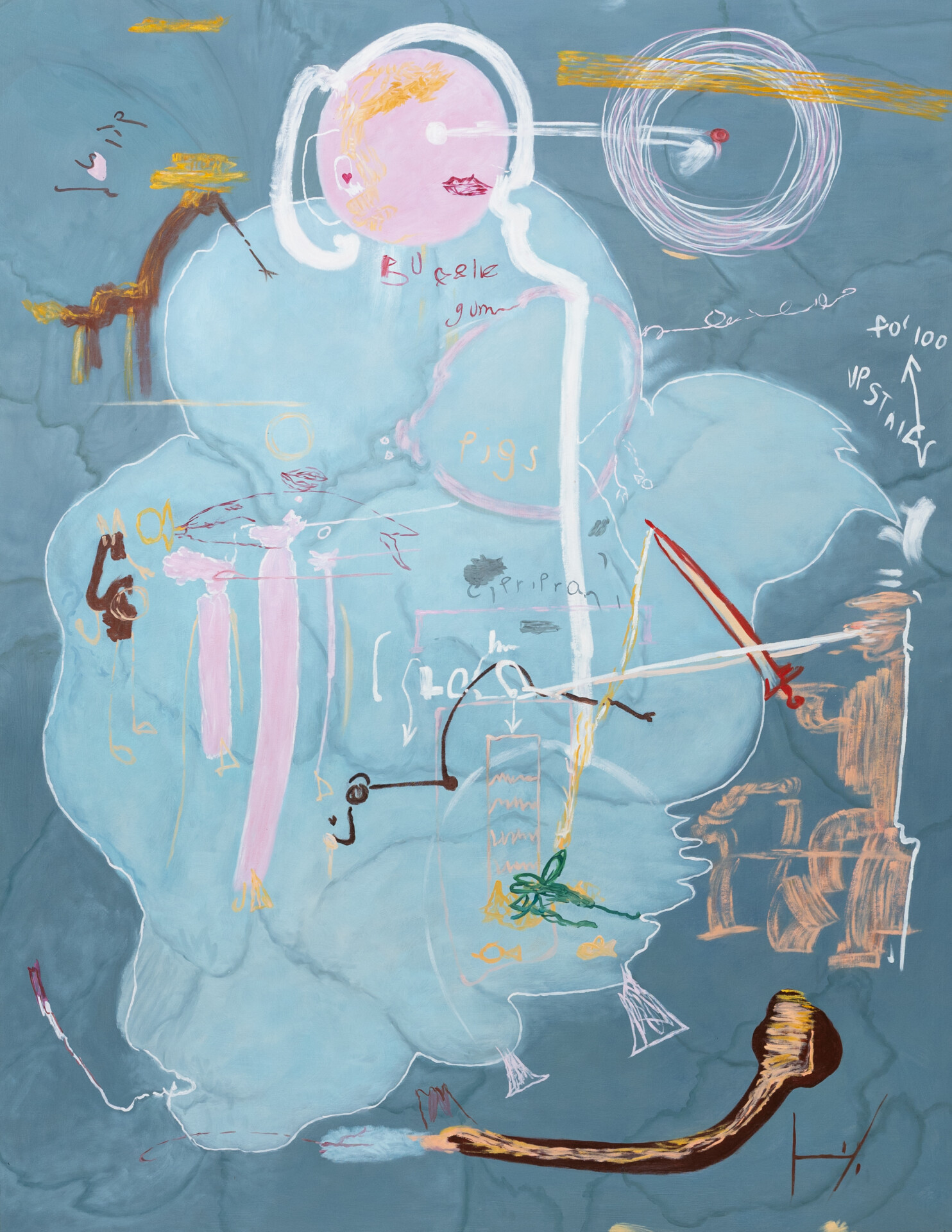 At launch, three artists are exclusively represented across the platform: Naleye, Jake Hall and Gods MGMT. Their practices differ markedly. Hall’s canvases move between gestural abstraction and diaristic mark-making. Naleye’s work explores pattern and repetition through dense, graphic compositions. Gods MGMT operates as a collective, working with bold visual language that draws on pop iconography and cultural symbolism.