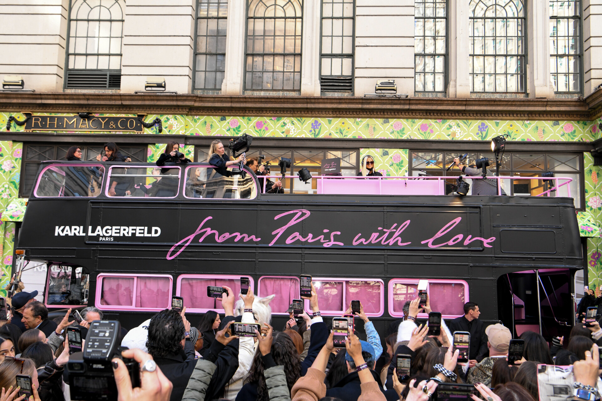On April 20th, Karl Lagerfeld and Karl Lagerfeld Paris took over Herald Square in New York to celebrate their Spring–Summer 2026 campaign, From Paris with Love, starring Paris Hilton. Perched atop a vintage double decker bus in an all black look, Hilton delivered a special DJ set against theHerald Square Plaza reimagined to resemble a Parisian-inspired destination in the middle of New York City.