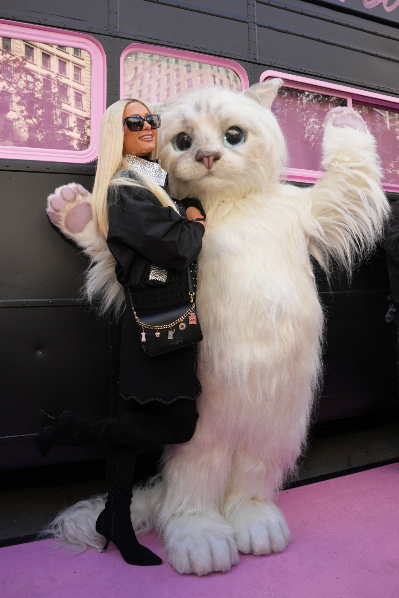 The venue was outfitted to look like a chic Parisian café, complete with a branded coffee cart, bistro chairs, and pains au chocolat. Even Karl Lagerfeld’s cherished cat, Choupette made an appearance, through a staggeringly lifelike costume – her first sighting in New York since the 2023 Met Gala.